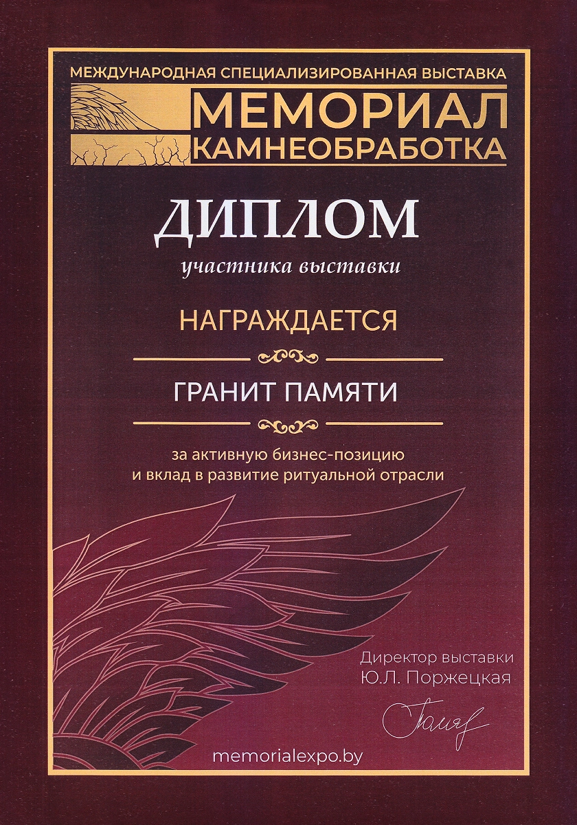 Ежегодные экспоненты профильных выставок в России «Некрополь», «Карелфорум», «Белый Тополь», «Ритуальные услуги. Камнеобработка» и в Белоруссии «Мемориал. Камнеобработка». Деятельность компании отмечена отраслевыми наградами: победители в номинации «медийность» в конкурсе «Золотая медаль Некрополь 2021», победители народного голосования на звание «Лучшая франшиза 2020», обладатели «Золотого скарпеля», номинанты на звание «Лицо Отрасли Некрополь 2020». Сотрудница компании признана «Самой обаятельной в каменной отрасли 2022».