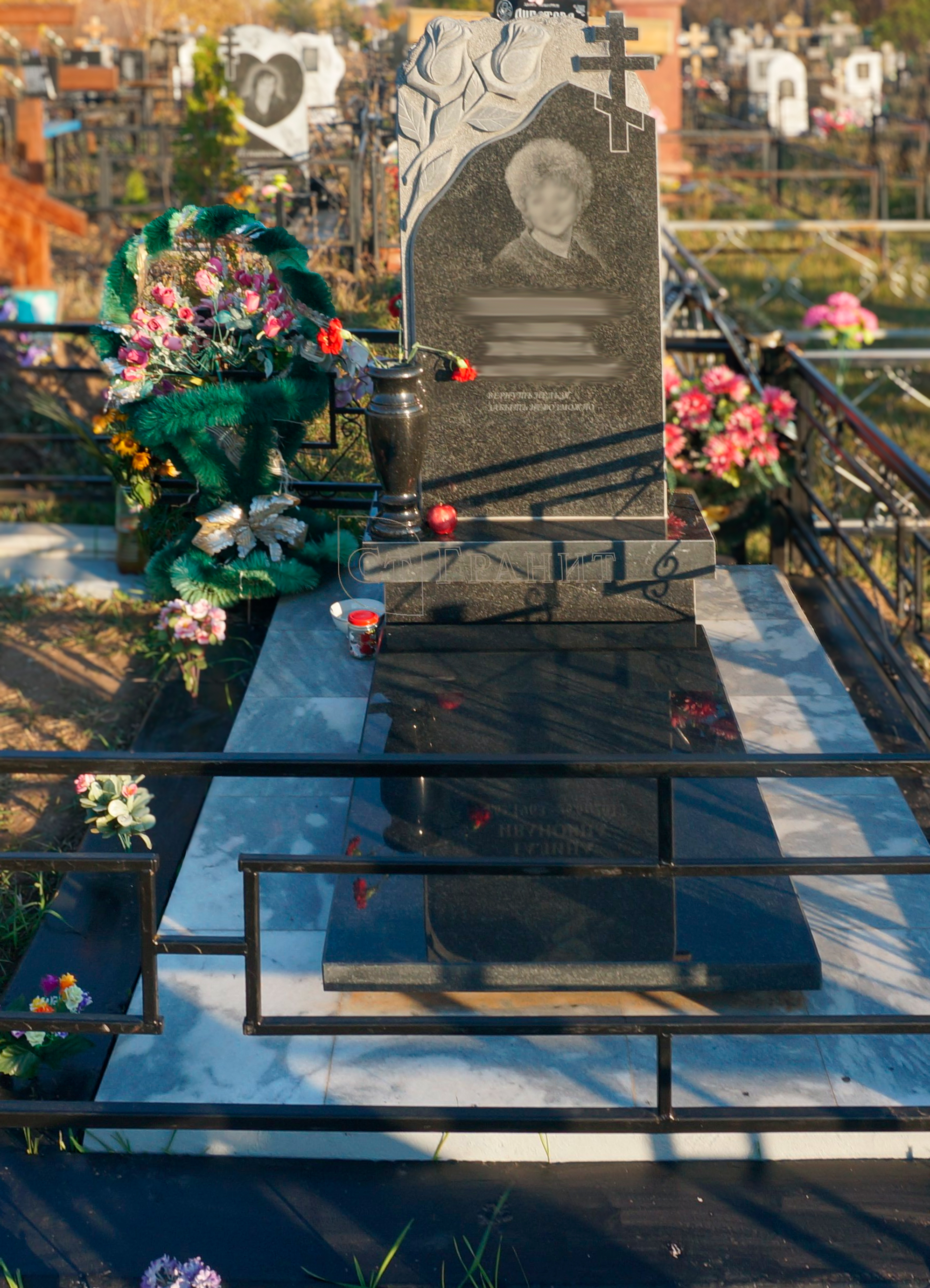 Дополнительно оплачиваются: гравировка (портрет, ФИО+даты), оградка, подготовка комплекта, установочные работы, доставка