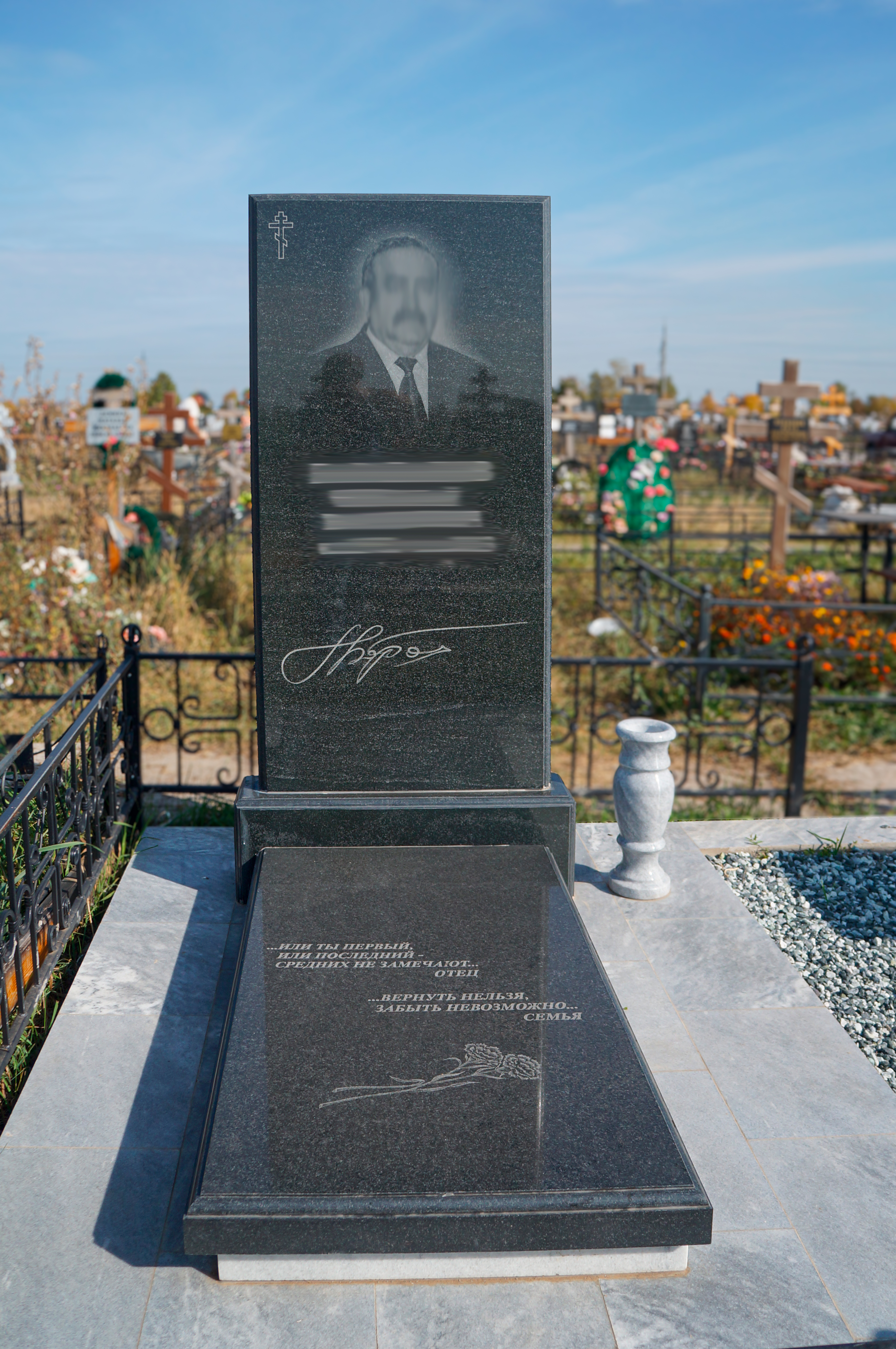 Это не только сухие ФИО и даты жизни. Дополнительной гравировкой можно показать больше об ушедшем — его пути и достижениях, о работе и увлечениях.