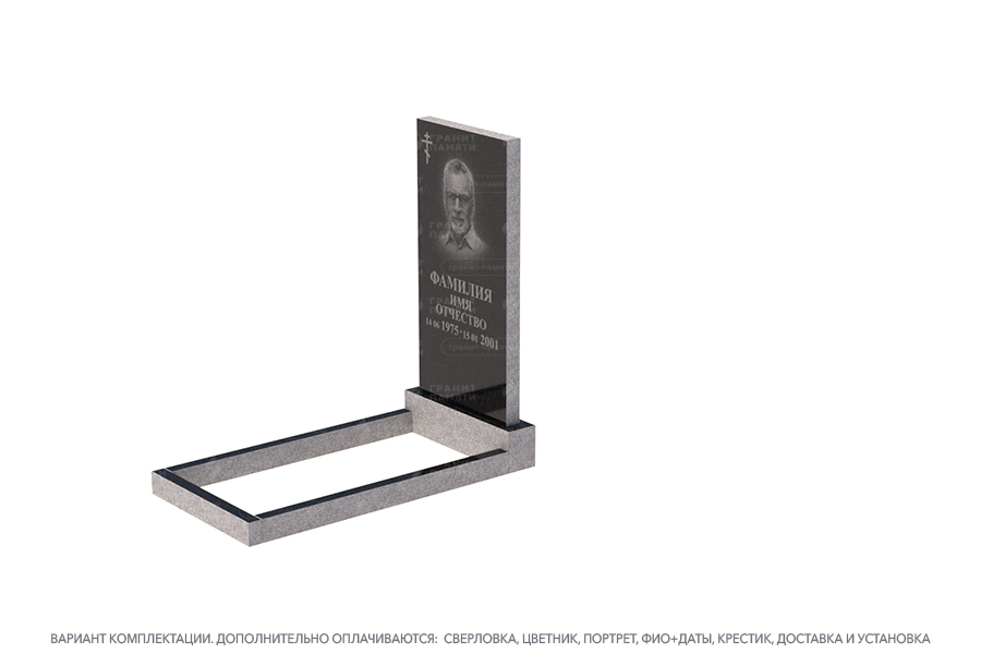 - Доступен в разных комплектациях: с цветниками, с надгробными плитами и т.д.