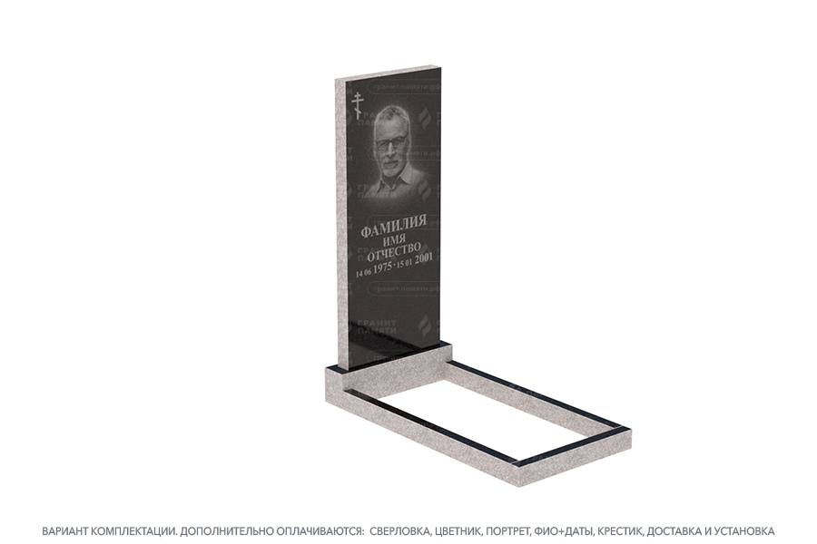 - Доступен в разных комплектациях: с цветниками, с надгробными плитами и т.д.