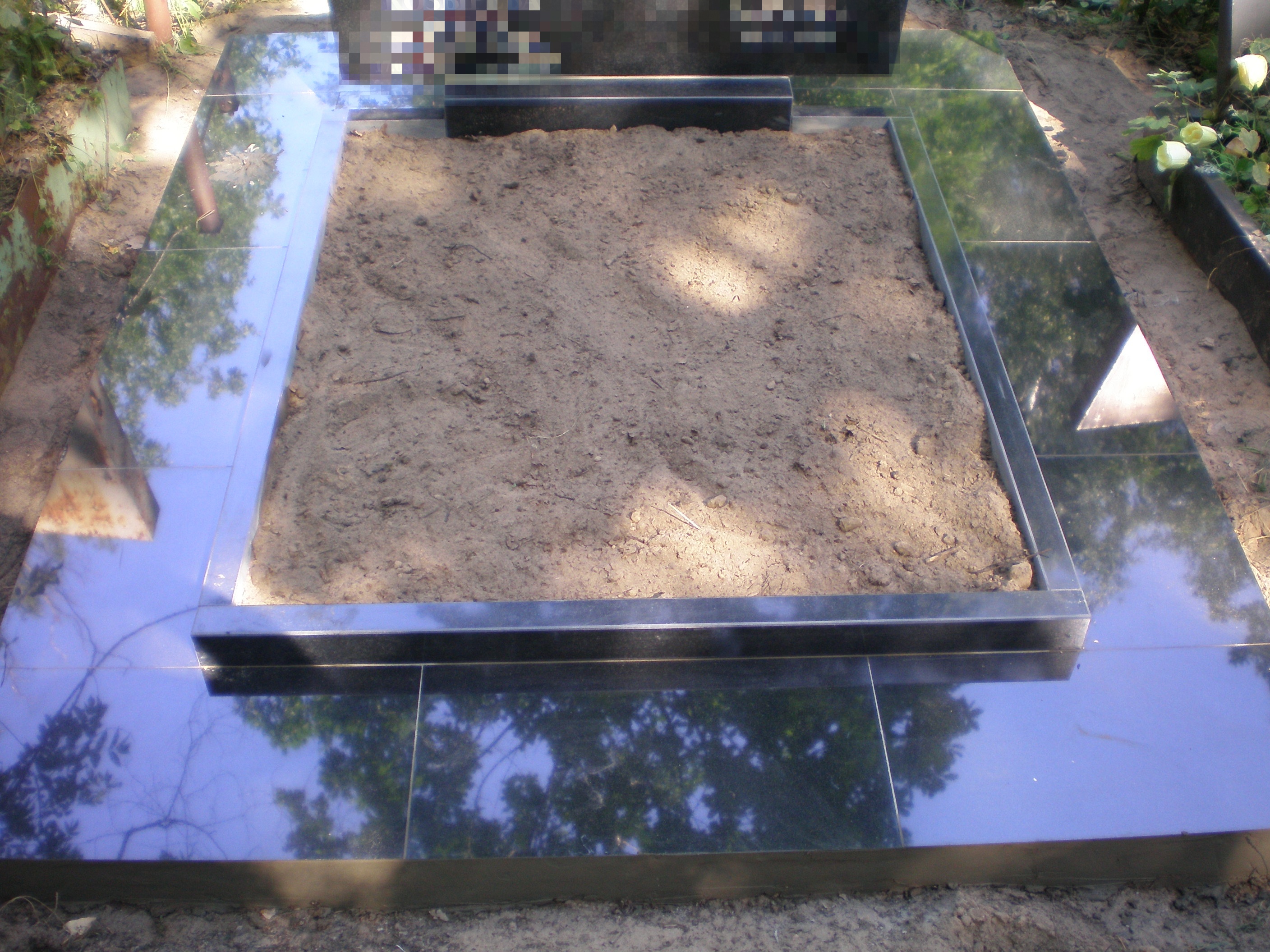 Установки памятника и цветника иногда бывает недостаточно — оформление цоколя могилы плиткой из гранита или мрамора помогает придать месту захоронения законченный аккуратный вид. Такая облицовка: